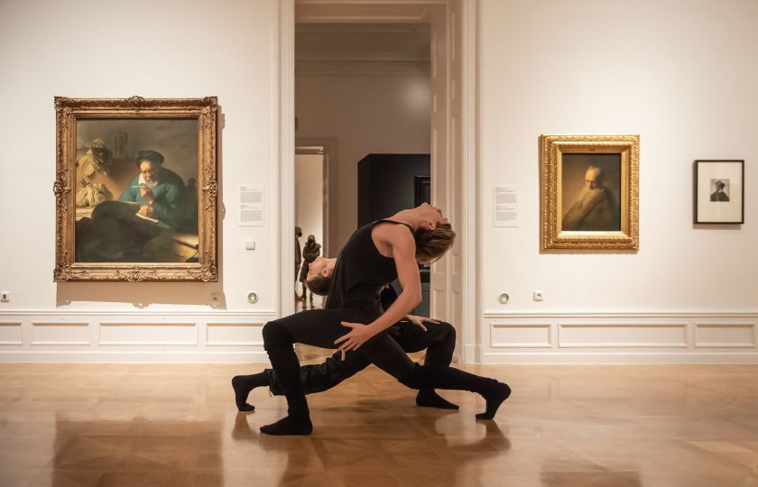 Sólisté Baletu ND Evgeniya Gonzalez a Fraser Roach interpretují vztah Rembrandta a jeho životní lásky Saskie. Tanec vychází z přímé inspirace výtvarnými díly, jde o dialog mezi živým tanečním uměním a samotným Rembrandtovým géniem. Milostný duet se natáčel ve výstavních prostorách, kromě portrétu Rembrandtovy ženy Saskie se součástí vizuálního díla stal i obraz Učenec ve studovně, který je jediným Rembrandtovým dílem na území ČR. Za videoartem stojí italský režisér Marco Chiodi, který s Baletem Národního divadla dlouhodobě spolupracuje.