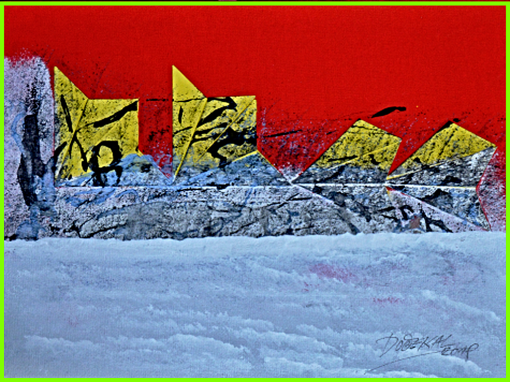 Umělec vybírá jeden po druhém elementy, které bude integrovat do svých výtvorů a bude snít o transformacích, alchymií, různých skladbách. Nechává ruce vést nevědomím. Nůžky a štětce. Vidíme malé a střední formáty, geometrické postavy, skvrny jako póry papírové hmoty, imaginace obklopené polévkou písmen. Je to poezie v pohybu. Texty tančí mezi roztrženými listy, symboly a hlásky jsou literárními zlomky v šifrovaném jazyku. Hodně rytmu v hlasech zpívajících jednotně. A stejným způsobem můžeme vést dialogy s černým humorem, s určitými utopiemi a rozpory reality, fragmentace a znovu a znovu paralelní realita.