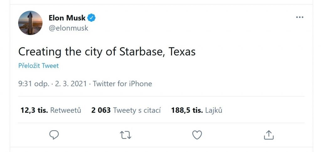 Vypadá to jako legrace, ale není. Bývalá vesnice Boca Chica na samotném jihu Texasu se začne měnit v město Starbase, místní úřady už o tom vědí.