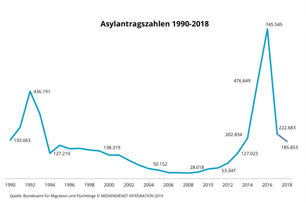 Počet příchozích migrantů není konstantní a zákony by měly počítat s možností, že zase poskočí. Podívejte se třeba na to, jak významnou „špici“ udělal v počtu žádostí o azyl rok 2015 v Německu.