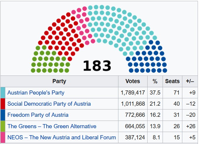 Nejdřív ještě krátce k jiným koaličním možnostem. Vítězná ÖVP má v parlamentu 71 poslanců, potřebuje tedy ještě aspoň jednu stranu k většině.