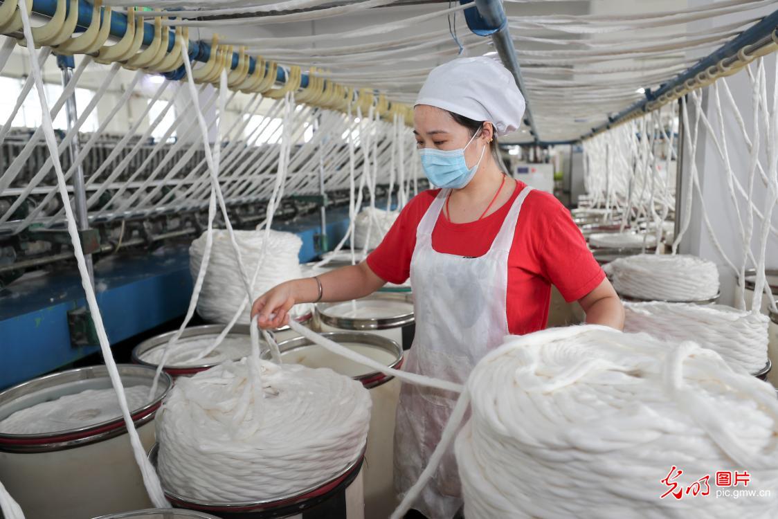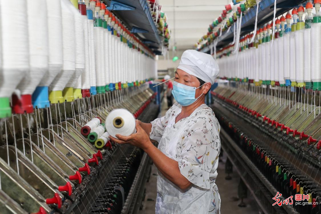 V posledních letech místní úřady obvodu Ganyu neustále posilovaly rozvoj průmyslu na zmírňování chudoby, důrazně propagovaly „dílny na zmírňování chudoby“, aby vytvořily pracovní místa pro každého vesničana a umožnil chudým lidem „vydělávat peníze a starat se o své rodiny“. (Foto: Si Wei /Guangming Picture)