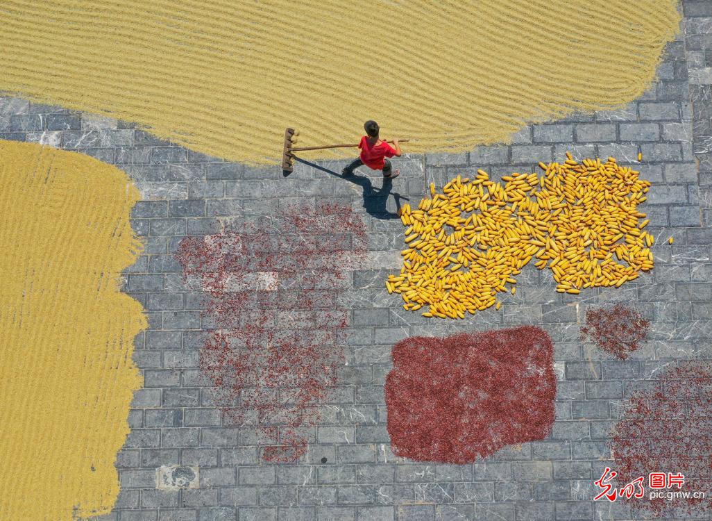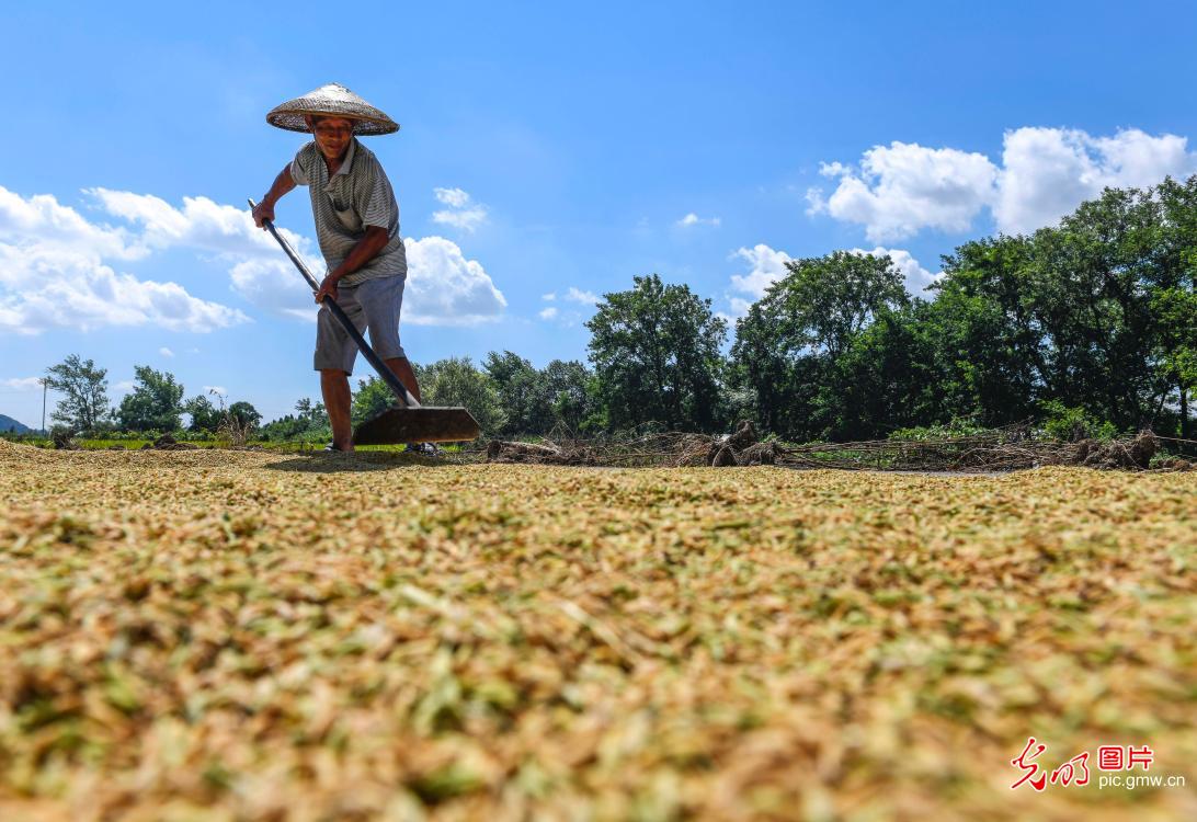 V těchto dnech přičel čas první sklizně rýže. Zemědělci v okrese Daoxian v provincii Hunan využili dobrého počasí k jejímu osušení. (Foto: Jiang Keqing / Guangming Picture)