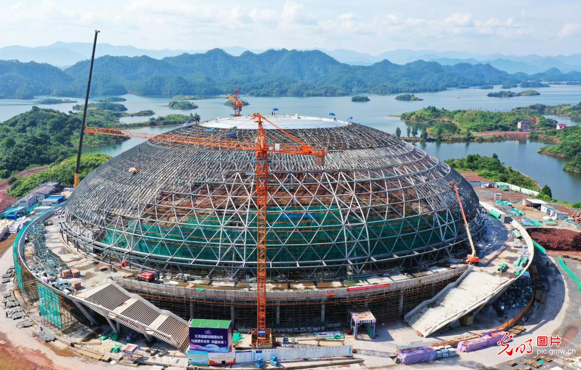 Dne 23. července 2020 byly dokončeny hlavní stavební a konstrukční práce na cyklistické stadionu Chun'an pro Asijské hry, které se budou konat ve městě Hangzhou v provincii Zhejiang. Nyní probíhají dokončovací práce, jako je například instalace elektrických rozvodů. (Foto: Yang Bo / Guangming Picture)