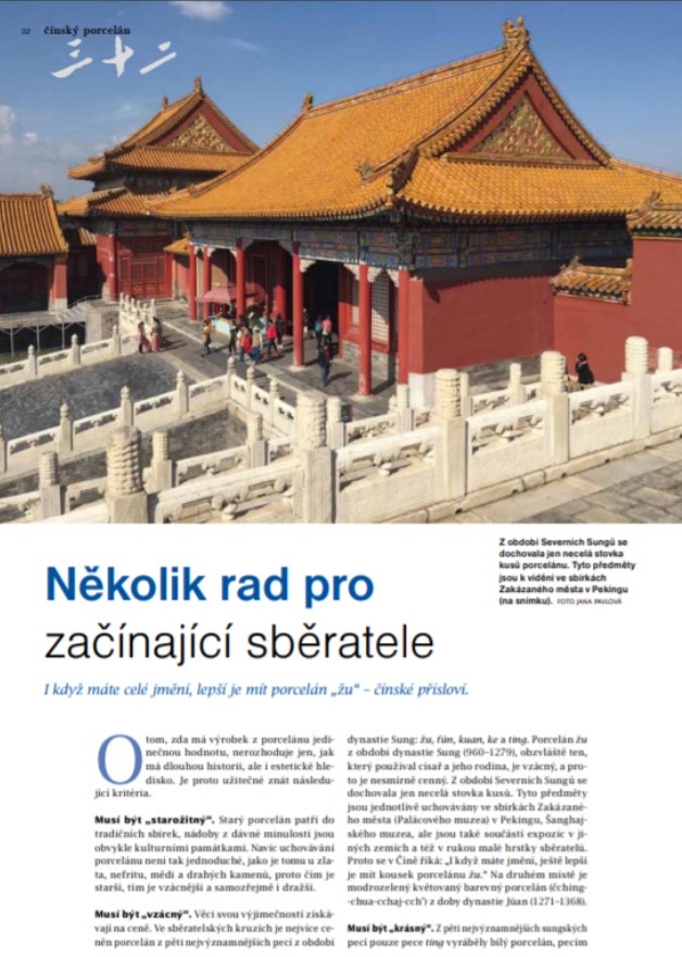 Na 48 stranách jsme se věnovali historii i současnosti čínského porcelánu, jeho odkazu v České republice, díky čemuž jsme poznali mnoho zajímavých a inspirativních osobností. Nečekejte ale odborné texty – naším cílem nebylo přinést ucelený přehled vývoje tohoto ceněného produktu ani připravit specializovaný časopis, ale potěšit vaše oči krásou zrozenou z rukou šikovných lidí, jejich odkaz je předáván z generace na generaci. Ne nadarmo mistr Kchung Siang-čching v jednom z článků tohoto Dossier říká: „Dělám to, o čem předchozí generace řemeslníků jen snily.“