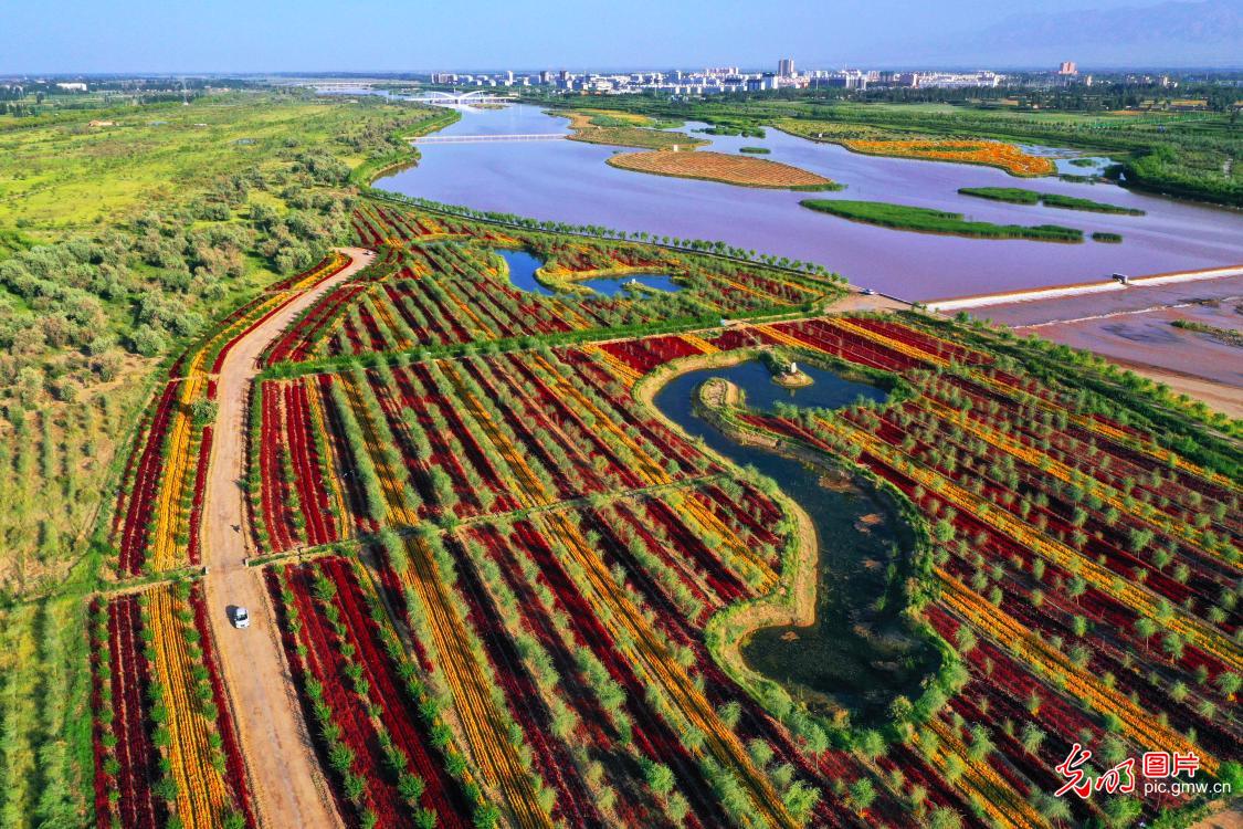 Na horní části řeky Žošuj (na horním a středním toku se nazývá Chej-che) v provincii Kan-su na severozápadě Čínské lidové republiky se pěstují chryzantémy, petúnie, nevadlece, astry či cínie. V létě vytvářejí krásné obrazce.