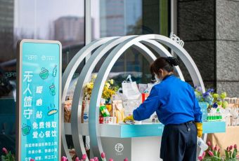 Bezobslužné stánky v Šanghaji vydávají dárky lidem, kteří musejí i přes epidemii koronaviru do práce